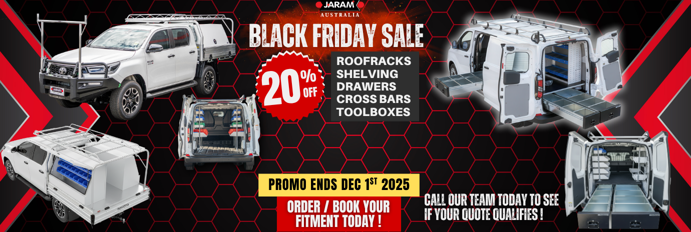 At Jaram Australia we help make your service vehicles the most efficient production machines possible with our extensive range of Roof Racks, Shelving Systems, Canopies, Drawer Systems, Ute Toolboxes, Ute Tray Rack and accessories.